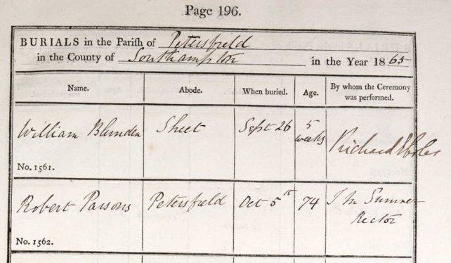 Ancestry records the Burial Register at Petersfield on 05-Oct-1865