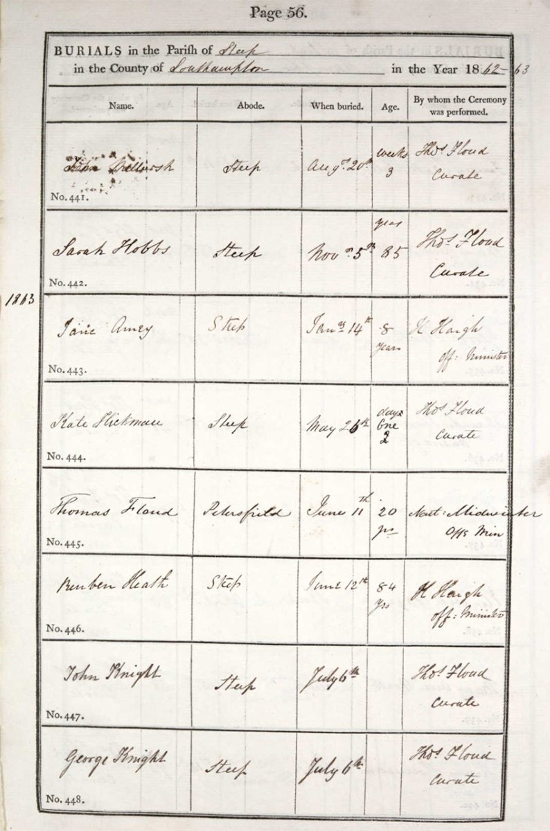 Ancestry shows the burial of Thomas Floud on 11-Jun-1863 at Sheet