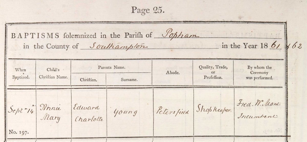 and baptism of daughter Annie Mary 14-Sep-1862