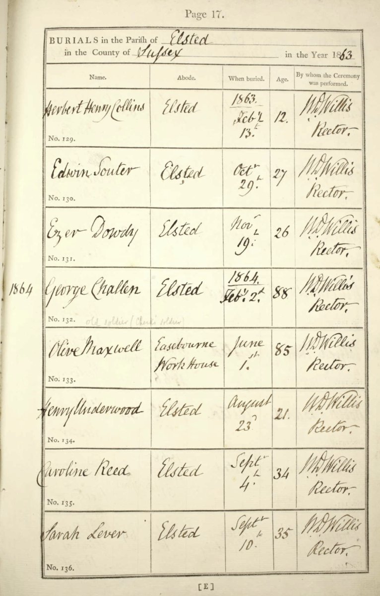 Ancestry shows the burial of Sarah Lever age 35 yrs at Elsted on 10-Sep-1864