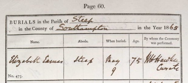 Ancestry shows burial register at Steep Parish Church