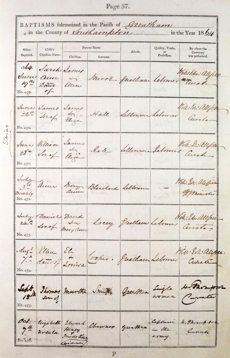 Ancestry shows the Burial Register for Frances Sidney Chawner at Greatham on 15-Jul-1864