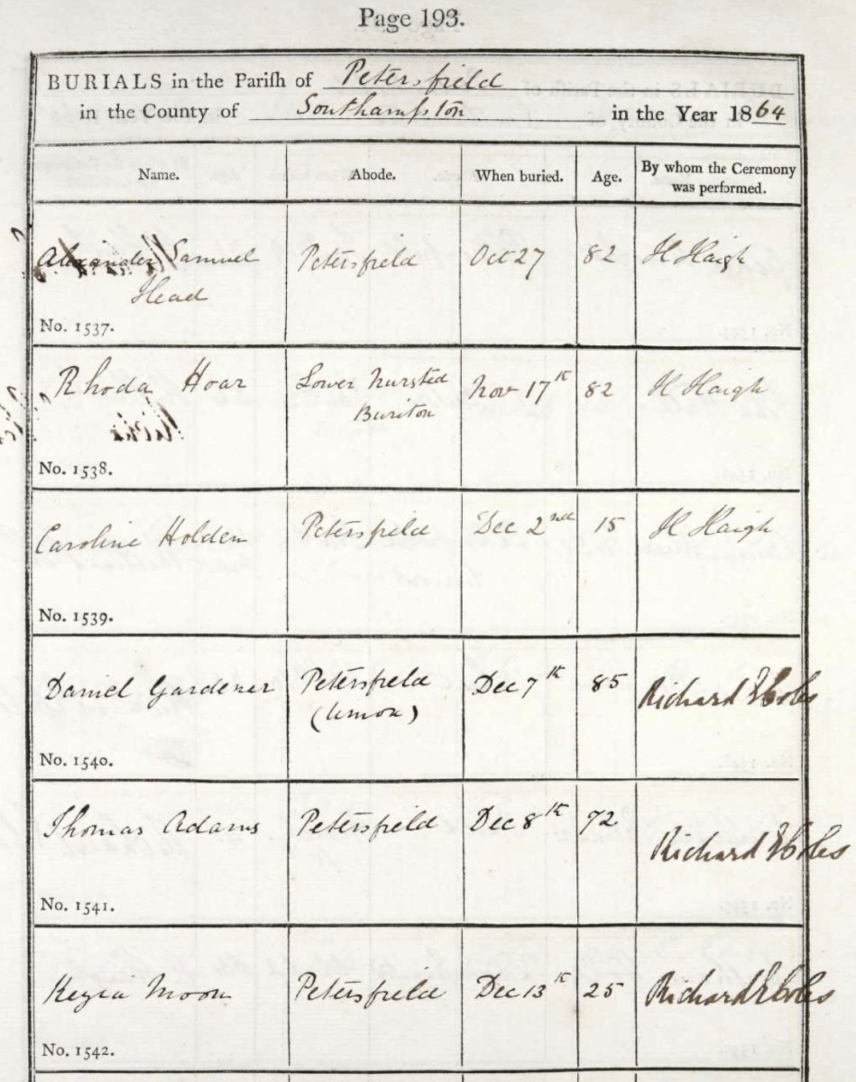and the Baptism register on 27-Jan-1839 at Petersfield
