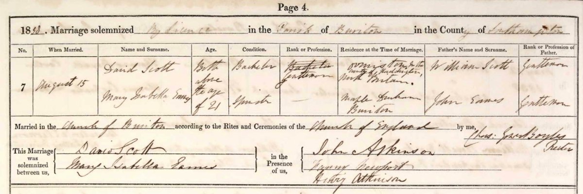 On the 15th ult., at Buriton Church, near Petersfield, Hants, by the Rev. C. R. Baylis, rector of Buriton, David Scott, Esq., of Ormiston, near Edinburgh, to Mary Isabella, only daughter of Mr. Eames of Mapleston, near Petersfield.